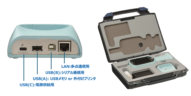 2つ目がキャリングケースである。本体および付属品のフィルタ、AC アダプタ等、測定に必要なものを同梱して持ち運ぶことができ、まとめることで、運搬の負荷を低減させている。(図4右参照)